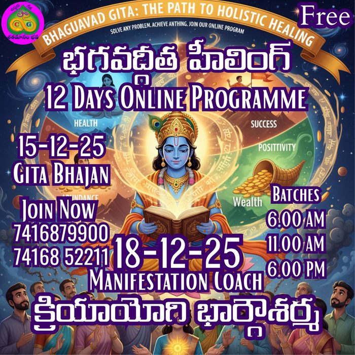Register now to join our 12 Days Online Programme, where you can explore the transformative power of Bhagavad Gita Healing, Kriyayoga techniques, and the principles of the law of attraction for effective manifestation.